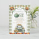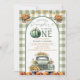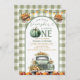 Otoño Calabaza de Otoño Primer Cumpleaños Camión Verde Gingham String Ilustra Invitación Floral, Editable Autumn Boy Nuestra Pequeña Calabaza Primer Invitación de Cumpleaños, ZB1