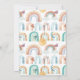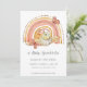 "Invitación de Baby Shower neutral de sexo, niño, Chica o amante de la mostaza de calabaza otoñal arco iris". Tonos cálidos de tierra con mostaza moderna, simple, pintada a mano, arcoiris de color rubor y terracota con calabaza blanca y calabaza para bebés, follaje de otoño seco y mariposas de terracota. En el reverso hay muchos arcos cálidos y elementos bonitos que pueden cambiar el color de fondo. Arte de la artista y diseñadora con licencia internacional, Audrey Jeanne Roberts, copyright.