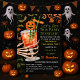 un diseño elegante y relajante, con una mano esquelética, que contiene un cóctel con temática de calabaza. Rodeada de un agitado paisaje verde y de naranjas bordes de hojas de calabaza, esta invitación es perfecta para pasar una noche espeluznante de diversión, cócteles y disfraces. La parte trasera muestra un diseño giratorio oscuro y caprichoso con murciélagos, cráneos y arañas para un toque de Halloween extra. ✔️ Ideal para fiestas anuales de Halloween ✔️ Perfecto para celebraciones de cócteles y disfraces ✔️ Texto completo de personalizable - edite detalles para su evento Ya sea que esté organizando una reunión de casa embrujada, una noche de cócteles de moda de Halloween, o un espeluznante bash lleno de disfraces, esta invitación impresionará a sus invitados. Parte de una colección completa de correspondencias - mix y match para un conjunto completo de fiestas!