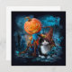 Calabaza graciosa y gato en un sombrero mágico