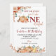 Esta invitación temática de calabaza es perfecta para celebrar el primer cumpleaños de un pequeño. El diseño incluye adorables calabazas, follaje de otoño y la frase "No es maravillosa". La invitación incluye todos los detalles esenciales, como la fecha, hora, ubicación. Es una manera divertida y festiva de invitar a amigos y familiares a unirse a la celebración.