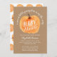 Una elegante invitación a la ducha de bebé, rústica y dulce, con una temática otoñal y con nuestra calabaza pintada a mano. Dice "Una calabaza dulce está en camino"