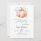 Esta elegante y encantadora ducha de bebé cuenta con un hermoso ilustracion acuático de una calabaza con una delicada cinta azul, ideal para celebrar la llegada de un pequeño en la temporada de otoño.
