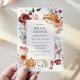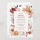 Celebra la futura novia con esta elegante invitación a la ducha de novia. Con sus calabazas de acuarela rústicas, sus flores de borgoña y rubia y su suave vegetación otoñal, esta invitación da la tónica de una ducha acogedora y romántica. Ideal para bodas de otoño, duchas con temática de calabaza o celebraciones de moda rústica. Personalice los detalles de su evento para crear una invitación única para su día especial.