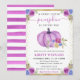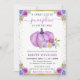 Hermoso diseño de caída de calabaza morada, blanca y azul con flores y purpurina de oro confetti