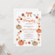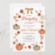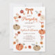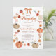Celebra tu calabaza en el camino con esta adorable invitación a un chica para una ducha bebé. El diseño presenta un encantador arreglo de calabazas en naranja suave y naranja quemado, acentuado con múltiples arcos dulces para un aspecto de coqueta y caída boho. Una perfecta invitación de temporada para dar la bienvenida a su bebé.