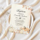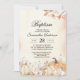 Celebre el día especial de su hijo con esta Invitación de Bautizo de Calabazas y Flores de Otoño Rústico. Diseñada con calabazas de acuarela, rosas suaves, tallos de algodón y follaje cálido de otoño, combina fe, elegancia y encanto rústico de granja.
