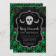 Invitación Calavera negra y verde y telaraña 21 cumpleaños