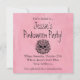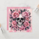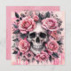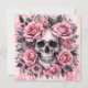 Esta invitación de estilo Pink-o-ween gótico presenta ilustraciones en acuarela de una calavera humana rodeada de rosas rosadas exuberantes, hojas negras y acentos de telaraña. El diseño combina elementos macabros oscuros con flores románticas suaves, creando un equilibrio llamativo entre la belleza y la mortalidad.