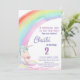 Invitación Cálido arcoiris de unicornio de segundo cumpleaños