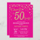 Invitación de cumpleaños número 50 con fondo de diamante Purpurina y rosa caliente. Confetti de oro. Cumpleaños de adultos. Cumpleaños de hombres o mujeres.