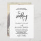 Esta caprichosa fotografía caligráfica de la parte trasera del boda de la tarjeta de invitación es perfecta para un boda moderno. El diseño presenta una tipografía elegante y rústica en la parte delantera y su foto en la parte trasera. Para más opciones de redacción de la invitación a la boda, consulte la colección completa de bodas de caligrafía caprichosa: https://www.zazzle.com/collections/119031173232028807