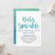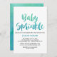 Esta tarjeta de invitación a rociar por bebé es perfecta para una ducha de bebé de los chicos de verano. El diseño es divertido y enérgico y cuenta con una fuente de escritura verde azulada verde y azul acuático oscuro en color de agua.
