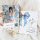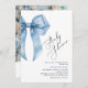 Invitación Caligrafía de Blue Bow Foto Código QR Baby Shower