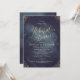 Caligrafía con letras de oro de glamour Diseño de la cena y puntos dorados confección sobre fondo de color azul marino oscuro del cielo noche acuático, efecto purpurina de oro falso de imitación metálica, moderno, moda, elegante y elegante, perfecto para bodas vintage o bodas de invierno por la noche. Personalizar tu propia tarjeta de invitación a la boda. Vea todas las piezas coincidentes de la colección a continuación.