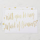 Invitación Caligrafía de oro "Serás mi sirvienta de honor"