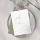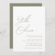 Moderno y elegante, minimalista y simple nombres de escritura de caligrafía verde sabio en la moderna tipografía invitación de boda con código QR en la parte posterior de la invitación.