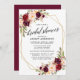 Moderna caligrafía elegante, acuarela Borgoña Marsala floral, marco geométrico dorado Invitación a ducha de novia