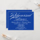 © Socialite Designs. Nuestro hermoso texto de caligrafía "Cena ensayada", con texto en blanco sobre fondo azul real, añade un toque de elegancia simple a esta invitación al ensayo de la cena. Reemplace fácilmente nuestro texto de plantilla para su evento de cena.