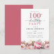 Invitación Caligrafía floral de Pink Garden 100 cumpleaños