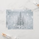 Caligrafía moderna Árboles de invierno de la temporada de alegría Invitación a la fiesta de Navidad - En colores azul plateado apagado, un grupo de árboles de pino de arte lineal - de pie en una escena de nieve realizada en estilo bokeh - Temporada de alegría escrita en una caligrafía manuscrita - Personalice la información de la fiesta en la parte posterior - Adecuado para uso corporativo.