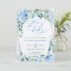 Invitación Caligrafía moderna Font Blue Floral Baby Shower