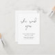 Dilo con estilo: ¡Ella dijo que sí! Esta invitación única a la fiesta de compromiso incluye caligrafía moderna en un diseño limpio en blanco y negro. Minimal pero elegante, es la manera perfecta de anunciar tu celebración con encanto y sencillez, sin necesidad de una foto. Es una buena elección para parejas boho, clásicas o modernas que planean un evento elegante y económico.