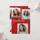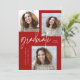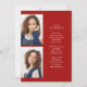 Calligrafía Roja Moderna Cinco invitaciones a la fiesta de graduación fotográfica presentan tres fotos en la parte delantera, junto con dos fotos y los detalles de tu fiesta de graduación en la parte trasera.