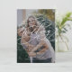 Esta caligrafía romántica y oscura foto florece invitación a la boda es perfecta para un simple boda. El moderno diseño clásico presenta vistosos remolinos y florituras con una preciosa y elegante tipografía con letras a mano. Personalice con 2 fotos de compromiso, una en la parte delantera y otra en la parte trasera.
