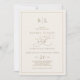 Esta romántica caligrafía dorada invitación a una boda con un monograma de marfil es perfecta para un simple boda. El moderno diseño clásico presenta vistosos remolinos y florituras con una preciosa y elegante tipografía de Relieve metalizado de oro con chaflán a mano con letras falsas y oro. Nota: Este diseño no tiene Relieve metalizado oro real. Es un gráfico de alta calidad hecho para parecer un Relieve metalizado dorado.