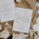Esta romántica caligrafía dorada en una sola invitación a la boda es perfecta para un simple boda. El moderno diseño clásico presenta vistosos remolinos y florituras con una preciosa y elegante tipografía de Relieve metalizado de oro con chaflán a mano con letras falsas y oro. Guarde el papel incluyendo los detalles en la parte posterior de la invitación a la boda en lugar de en una tarjeta separada. Incluya también la información de RSVP si su invitado responderá electrónicamente (opcional). Nota: Este diseño no tiene Relieve metalizado oro real. Es un gráfico de alta calidad hecho para parecer un Relieve metalizado dorado.