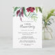 Esta invitación de aniversario de bodas tropical de caligrafía es perfecta para una celebración rústica de aniversario de bodas. Este encantador diseño pintado a mano presenta precioso burdeos, flores púrpuras y follaje verde ordenadamente dispuestos en elegantes ramos.