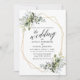 La moderna caligrafía Script Elegante acuarela Botanical Greenery Wedding Invitation Card incluye hojas de eucalipto, follaje botánico verde, polvorientas hojas azules y otros hermosos paisajes botánicos. Marco geométrico de oro, negro verde de salvia