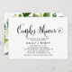 Esta tarjeta de invitación a la ducha de parejas florales de caligrafía belle del sur es perfecta para una moderna ducha de boda. El diseño presenta una tipografía rústica y elegante en blanco y negro con bonitas flores de acuarela blancas en el fondo.