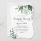 Esta cálida caligrafía verde, una ducha de lencería dorada, es perfecta para una moderna ducha nupcial. El diseño se caracteriza principalmente por hojas tropicales verdes.