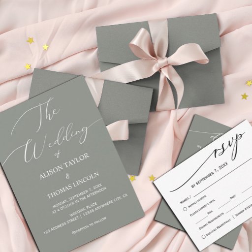 Simple Sage Green Calligraphy Wedding SuiteDiseñado por Rose Art