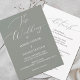 Invitación Calligrafía verde y blanca sabia simple todo en un