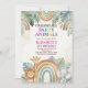 Calling All Party Animals Safari Zoo Birthday Invitation.A Boho Rainbow Safari birthday invitation featuring Cute Watercolor Safari Animals and Boho Rainbows. Perfect for Boys or Girls celebrating a Wild One Birthday.