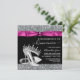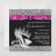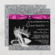 Invitación a la Quinceañera con magenta rosa pentaba caliente con hermosos zapatos de tacón de purpurina plateado y tiara de diamante sobre un elegante fondo de glam de diamante mágenta rosado caliente. Esta elegante invitación a la Quinceañera rosa y negro caliente es fácilmente personalizada con tus detalles. También puede cambiar el color de fondo en la parte delantera y trasera.