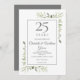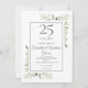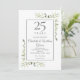 Con delicada vegetación de jardín campestre pintada a la acuarela, esta elegante invitación de cambio de fecha de aniversario se puede personalizar con la información de su celebración especial de 25 años de aniversario, con un fondo plateado en el reverso. Diseñado por Thisisnotme©