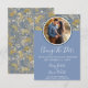 ¿Necesita reagendar su boda? ¡Alerta a sus invitados sobre el cambio de fecha fácilmente! Este elegante diseño de patrón botánico es colorido y dramático, y está lleno de encanto nupcial elegante. Flores silvestres modernas en tonos de amarillo mostaza, azul marino y gris piedra con un enfoque en flores de margarita blancas y racimos de bayas de serbal... Romántico atrevido.