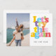 Esta divertida y colorida tarjeta de cambio de fecha puede ser personalizada con su información especial de foto y postergación. El reverso tiene detalles adicionales. Perfecto para bodas, duchas de novias, duchas para bebés, bautizos, fiestas de compromiso, celebraciones de aniversario, graduaciones, encuentros de cumpleaños y otros eventos especiales a lo largo del año. Diseñado por Thisisnotme©