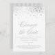 ¡Cambia la fecha! Anuncie a su familia y amigos el aplazamiento de su boda con esta elegante tarjeta de invitación nupcial. Cuenta con puntos falsos de Relieve metalizado plateado con estampado de rayas. Personalice agregando sus nombres y otros detalles. Esta tarjeta de postergación del boda de Relieve metalizado plateado también será perfecta como una invitación de salida.