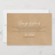 Esta divertida tarjeta rústica kraft boho para cambiar la fecha se puede personalizar con la información de su aplazamiento. El reverso tiene detalles adicionales. Diseñado por Thisisnotme©