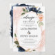 Diseño moderno y elegante impreso en Azul Marino y Rosa Flor de Floral y Marco Geométrico Invitación de Cambio de Planes que se puede personalizar con su texto. Por favor, haga clic en el botón "Personalizar" y use nuestra herramienta de diseño para modificar esta plantilla. ¡Consulte la tienda de Diseño Gráfico para otros productos que coincidan con este diseño!