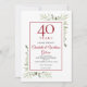 Con delicada vegetación de jardín campestre pintada a la acuarela, esta elegante invitación de cambio de fecha de aniversario se puede personalizar con la información de su celebración especial de 40 años de aniversario, con un fondo rubí en el reverso. Diseñado por Thisisnotme©