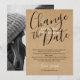 Esta tarjeta de cambio de fecha kraft boho rústica se puede personalizar con la información de su aplazamiento. El reverso tiene su foto especial. ¡Perfecta para bodas, despedidas de soltera, baby showers, bautizos, fiestas de compromiso, celebraciones de aniversario, graduaciones, reuniones de cumpleaños y otros eventos especiales a lo largo del año! Diseñado por Thisisnotme©