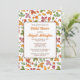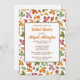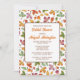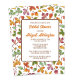 Invitaciones a la ducha de bonito y coloridas hojas cambiantes caen con los detalles de celebración de la ducha de novia personalizados personalizado impreso en naranja y marrón en blanco sobre un fondo temático de otoño de hojas cambiantes de colores en verde, naranja, morado y amarillo. Personalice estas invitaciones para sus duchas de novias caídas durante los meses de otoño.