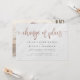 ¡Uy! Las circunstancias imprevistas son difíciles de planificar, pero con estas tarjetas de aplazamiento de boda puedes informar fácilmente a tus seres queridos. Con un fondo de mármol blanco. Las palabras "cambio de planes" aparecen en la parte superior en una tipografía de falso foil de oro rosa con dulces remolinos. En el reverso hay una plantilla de foto para que la reemplaces con la tuya. ¡Haz clic en "Personaliza esta plantilla" y comienza a agregar tus propios detalles!