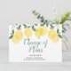Esta tarjeta de cambio de planes para despedida de soltera con limones modernos se puede personalizar con los detalles de aplazamiento de su despedida de soltera. El reverso tiene información adicional. Diseñado por Thisisnotme©